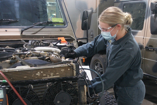She is currently studying a heavy diesel apprenticeship with Wodonga TAFE at the Army School of Mechanical Engineering where she is learning all aspects of mechanical principles from battery chemistry to engine rebuilds. She also takes part in external courses such as welding and dogging.