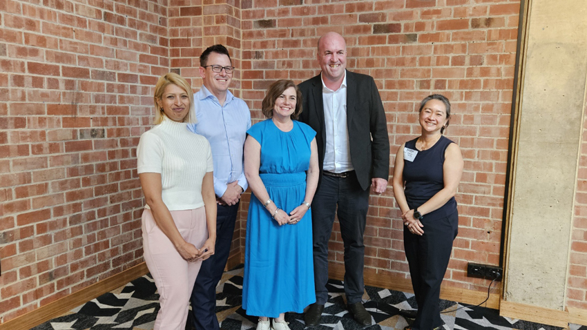 Pictured left to right: Jo Chaturvedi-Durant, Ryan Winn, Prof Christine Twomey, Malcolm Nutt, and Drew Menzies-McVey.