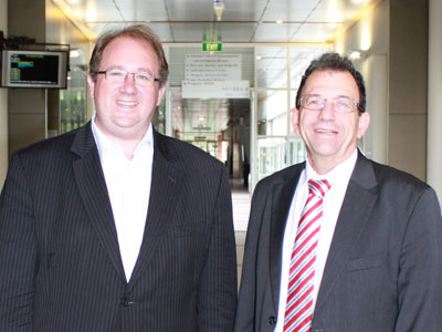 Senator the Hon David Feeney (left) with Deputy Chief Defence Scientist Dr Warren Harch (right)