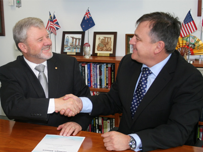 Chief Defence Scientist Dr Alex Zelinsky (right) with Lockheed Martin Australia Chief Executive Raydon Gates.