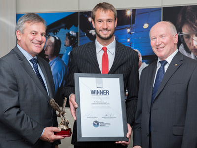 The award was presented by President RAeS Australian Division, Air Commadore Noel Schmidt and Chief Defence Scientist, Dr Alex Zelinsky.
