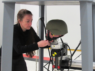 Using test equipment provided by Holden Australia modified to accurately replicate the unique 'underbelly' blast effects, Dr Franklyn and her team tested three foams at five different velocities, conducting the tests with a headform both wearing and not wearing a military helmet.