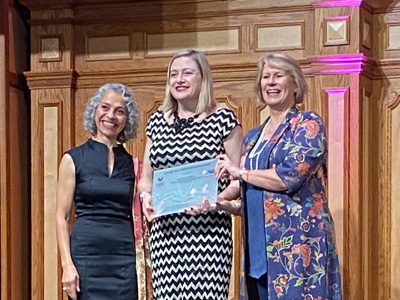 Chief Defence Scientist, Tanya Monro receiving the Athena SWAN Institutional Bronze award.