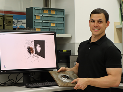 Defence scientist, Dr Brodie McDonald has spent years studying the properties of armour materials and developing computer modelling techniques to accurately predict how they perform when subjected to blast and ballistic impact.
