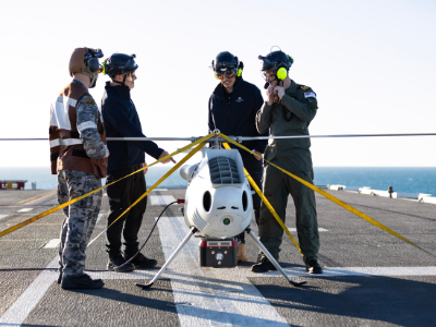 Geography scientist Dr Alexander Lee and his team attached the sensor as part of the S100 introduction into service trials on board HMAS Adelaide.